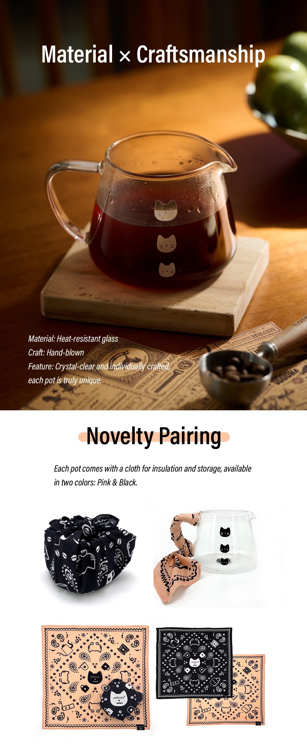 精緻組合: 附贈專屬黑色貓咪方巾,無論是自用收藏或作為禮物都極具質感。