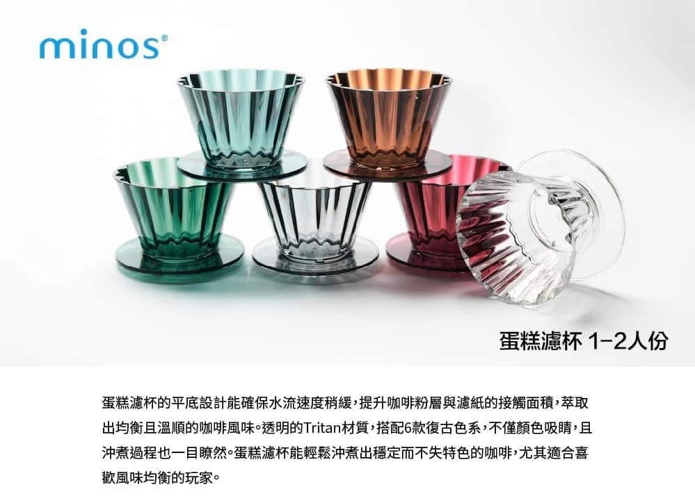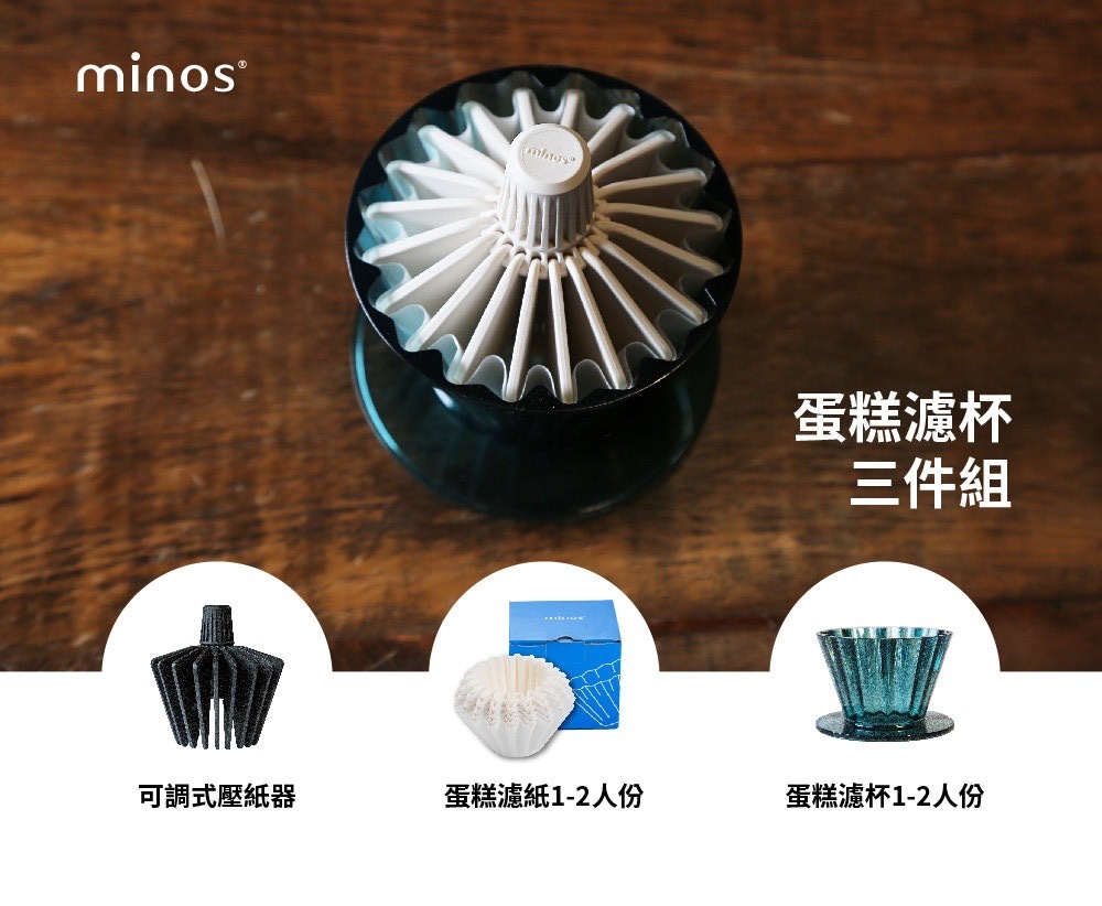 Minos蛋糕濾紙嚴選100%原木漿,經天然酵素處理,無異味且不含螢光劑,使用更安心。其特殊20條波浪摺邊搭配平底設計,能讓咖啡粉均勻接觸濾紙,有效提升萃取效率,使咖啡口感更豐富醇厚。適用於各類蛋糕型、波浪型及摺紙式濾杯,兼具實用性與廣泛相容性。